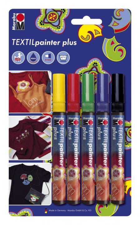 - 5 x Textilmarker 3 mm in gelb, rot, dunkelblau,grün, schwarz